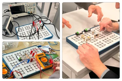 — Конечно, это будет набор по электричеству, электродинамике, основам электроники, который является победителем «Золотого медвежонка» в номинации «Лучшее учебное оборудование и средства обучения». Это уже подтвержденный выбор педагогов, который имеет достаточно широкий диапазон применения, начиная с младшей школы и заканчивая университетским профилем. Набор был создан нашей компанией совместно с нашими метод-центрами при университетах. Разработки велись долго, почти год, со всеми методическими особенностями, которые мы, как педагоги и методисты со стажем, хотели в него вложить — вплоть до размерных линеек, которые учитывают размер фаланги пальцев руки ребенка.