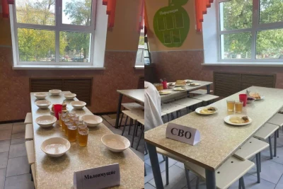 Таблички «Малоимущие» и «СВО» появились в одной из школ города Азова Ростовской области. Фото с ними разошлись по местным пабликам. Родителей возмутило не только разделение детей, но и то, какими блюдами кормили ребят. На фото можно разглядеть, что на столах для «Малоимущих» стоя тарелки с кашей, хлеб и напитки, на столах с табличкой «СВО» – пюре с мясом или рыбой, хлеб, напитки и тарелка с салатом.