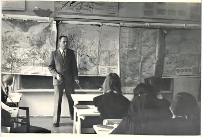 Интересен многоуровневый опрос учеников: каждый хотя бы чуть-чуть, но отвечал. Один записывал на магнитофон ответы за шторкой, двое – письменно у доски, один вел рассказ, а класс отвечал на уточняющие вопросы. Нужно было усердно следить за повествованием, потому что спросить могли в любой момент. Требовалась предельная точность в формулировке ответов, их полнота. Учитель мог задать вопрос подряд три раза, чтобы мы не расслаблялись. До сих пор помню интеллектуальное напряжение на уроках географии.