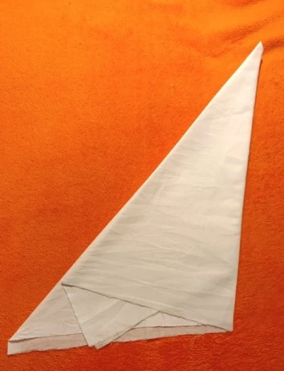 Берем ткань квадратной формы, соединяем два верхних угла.