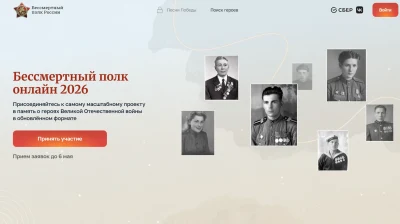 Акция проходит в партнёрстве с движением «Бессмертный полк России». Для участия необходимо зарегистрироваться на платформе. Это можно сделать по номеру телефона, через Сбер ID, с помощью VK ID, «Одноклассников» и MAX. Подтверждение входа по номеру телефона обеспечивает СберМобайл. Если анкета вашего героя уже проходила модерацию ранее, повторно отправлять её не нужно — он автоматически будет включён в шествие этого года.