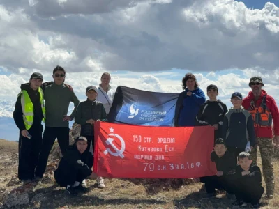 На вершине горы участники вспомнили героев Великой Отечественной войны и выразили благодарность ветеранам. Развернутое Знамя Победы стало для школьников и учителей символом преемственности и уважения к подвигу предков.